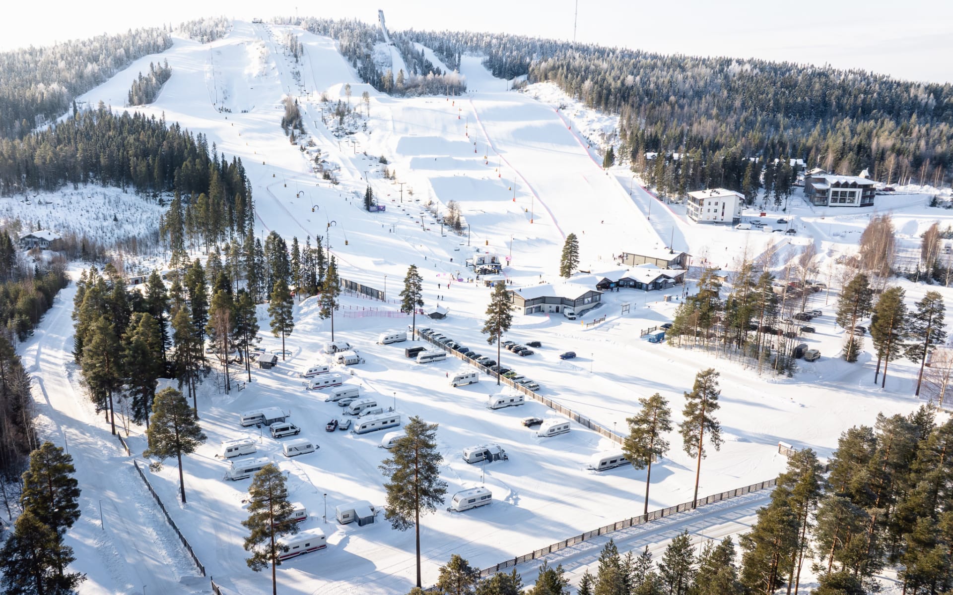 Caravan area is located in the very heart of Vuokatti, a short distance from services and is open during the winter season from October 1st to May 15th.