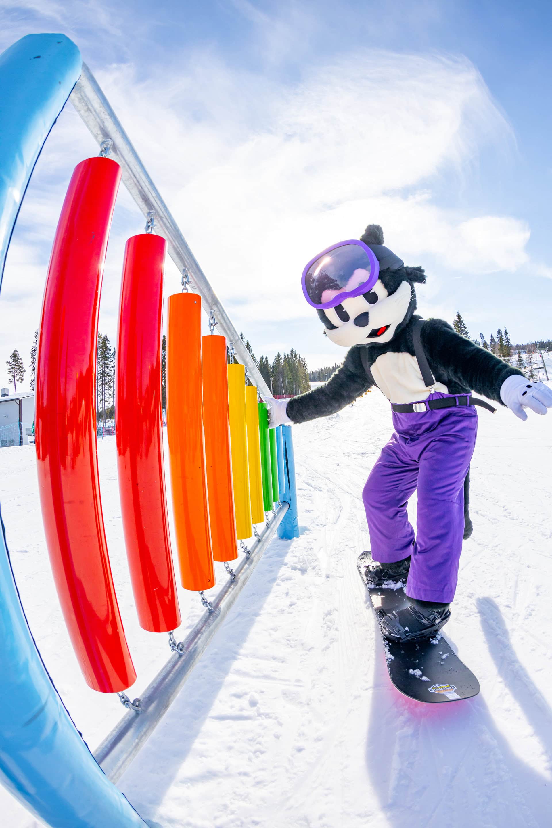 - Jättimäinen ksylofoni, jota voi soittaa rinteessä – tuo hauskuutta ja musiikkia laskupäivään.